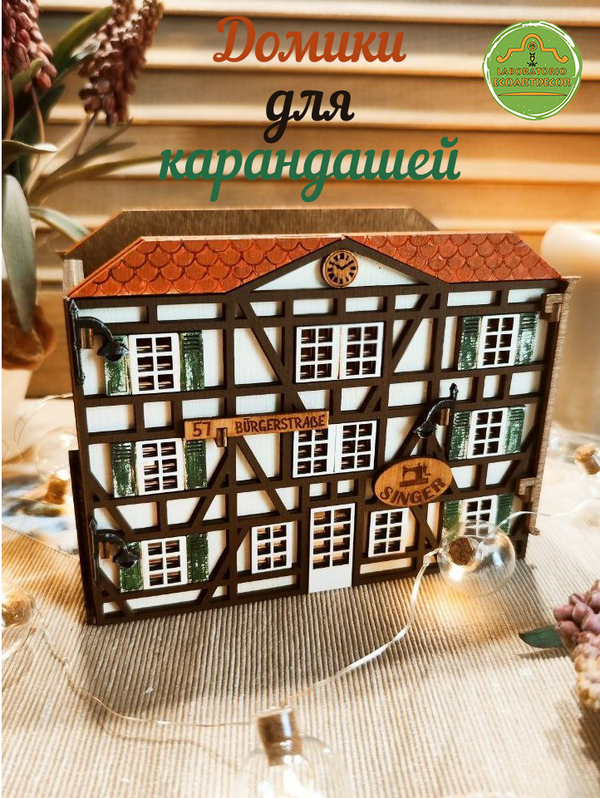 Органайзер для канцелярии Немецкие домики Фахверк 15*11*8см 1-СТОРОННИЙ ЭкоАртДекор