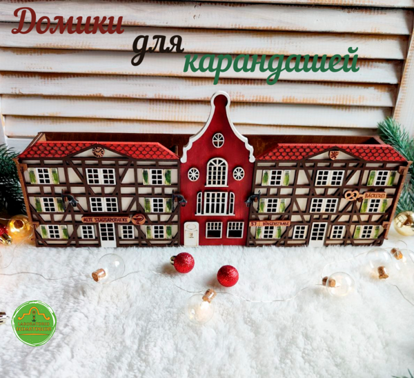 Органайзер карандашница Немецкие домики 15*11*8см 2-СТОРОННИЙ ЭкоАртДекор