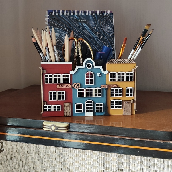 Органайзер для канцелярии на стол Голландские домики 15*12*8 ЗАГОТОВКА Экоартдекор